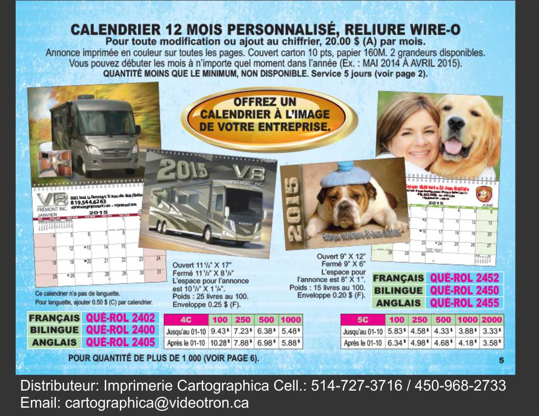 Calendrier a votre image